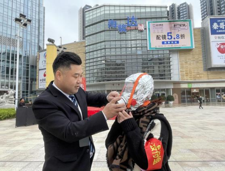 通過講解火災(zāi)給人生造成最大的危害是煙氣,教育大家火災(zāi)逃生注意事項(xiàng)以及防煙面罩等消防器材的正確使用方法。