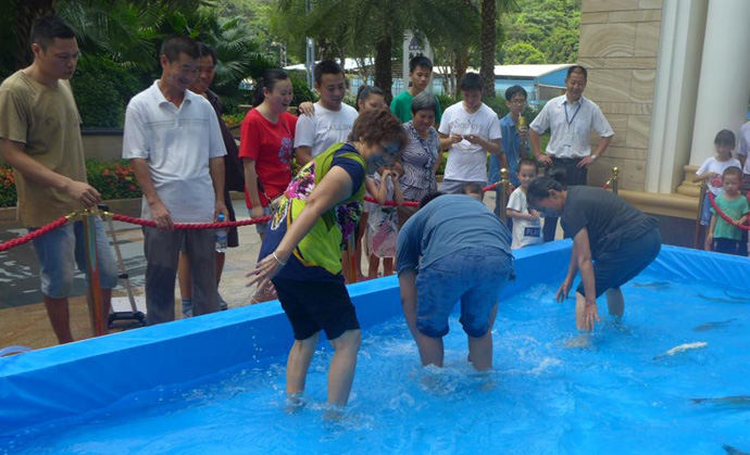 在本次活動(dòng)中最激動(dòng)人心的就要數(shù)捕魚(yú)達(dá)人游戲了,在幾十平方米大的水池,放的都是兩斤以上的大魚(yú),人們紛紛排隊(duì)進(jìn)水池捕魚(yú),只要在限定時(shí)間內(nèi)抓到就是自己的啦?。?/p>