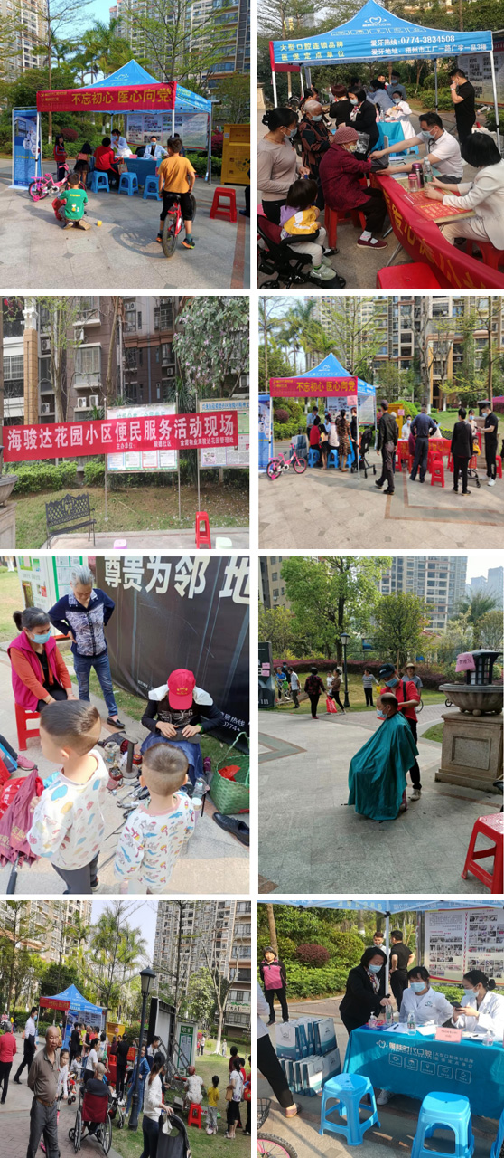 梧州海駿達(dá)花園物業(yè)管理處于2022年3月19日(本周六)上午在海駿達(dá)花園小區(qū)西門上臺階小廣場舉辦了多項便民服務(wù)活動?;顒拥倪^程得到了業(yè)戶們的一致好評,表揚物業(yè)的用心,實實在在為業(yè)主辦事,也希望多舉辦這類活動。1.免費磨刀2.免費修理雨傘3.免費理發(fā)4.免費口腔檢查5.免費測量血壓現(xiàn)場還有免費小禮品贈送牙膏、牙刷、牙線,先到先得,送完為止!